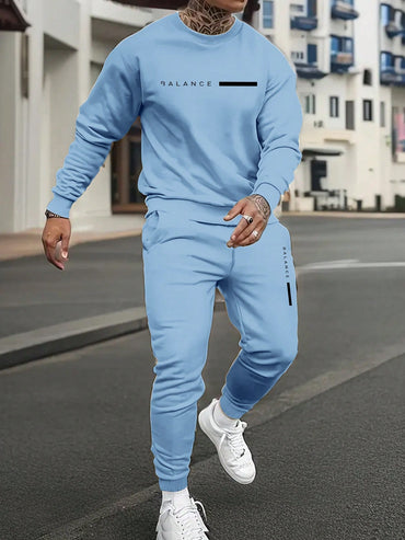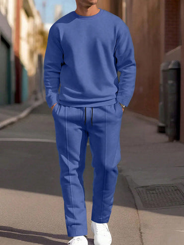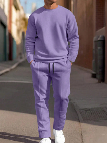 Homme Men's Casual Solid Color Sweatshirt And Sweatpants Set, For Sports And Daily Wear, Autumn