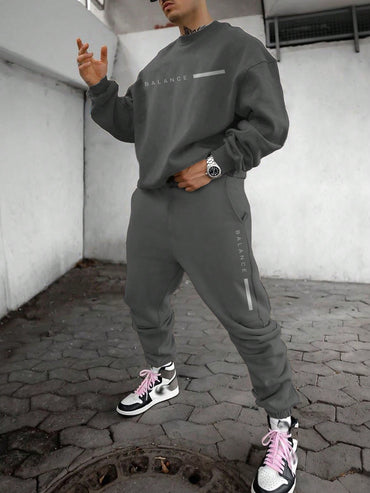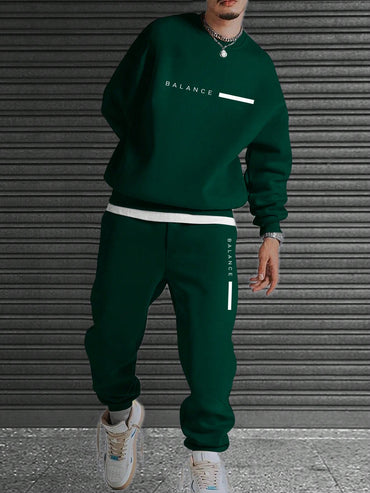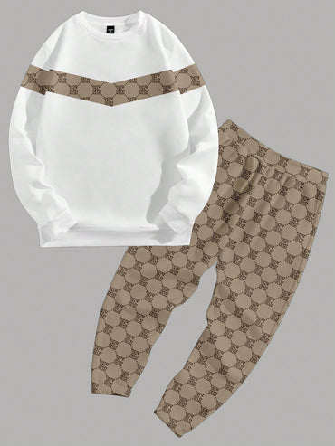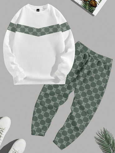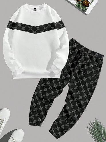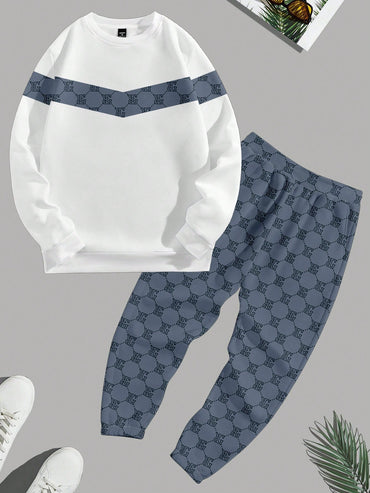 Manfinity Homme 2pcs Men's Casual Letter Printed Sweatshirt And Sweatpants Set, For Daily Leisure , Track Suit , Urban , Color Block