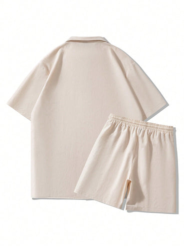 Manfinity Homme Men's Solid-Colored Simple Shirt And Shorts Set
