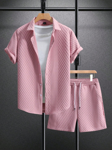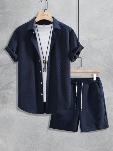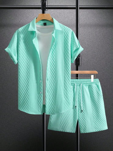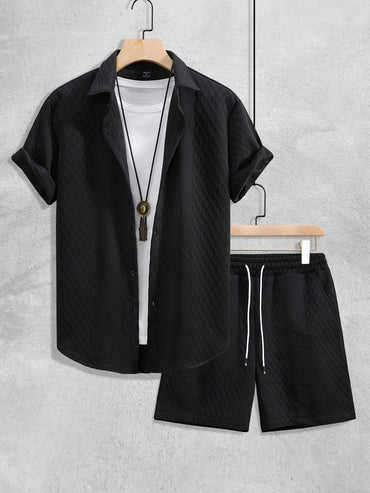 Manfinity Homme Men Solid Button Up Shirt & Drawstring Waist Shorts