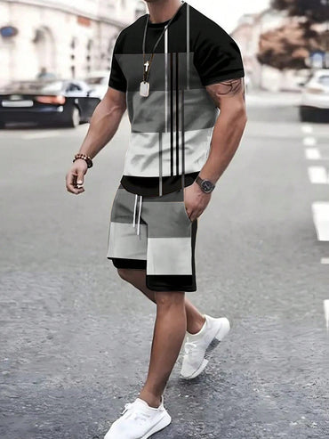 Homme 2pcs Plus Size Men's Crew Neck Short Sleeve T-Shirt And Drawstring Casual Shorts Set Men Summer Setsmen Short Setmens Short Setsmen Short Setsmen Sets Summer