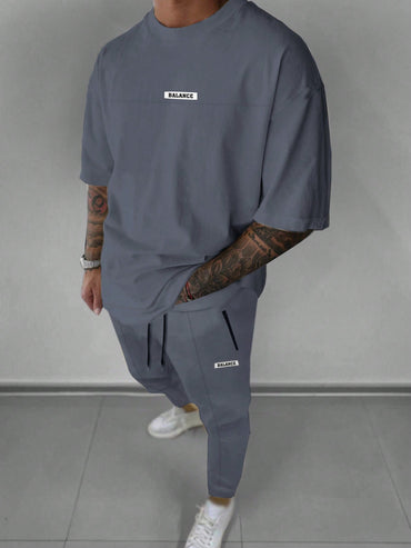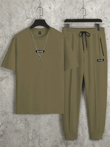 Homme Men Letter Print Drop Shoulder Tee & Drawstring Waist Sweatpants