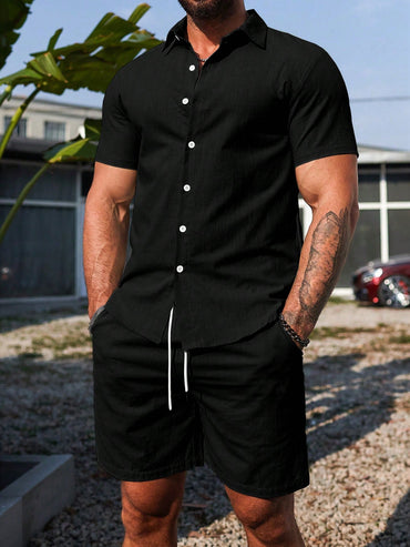 Manfinity Homme Men's Plain Short Sleeve Shirt And Shorts Set