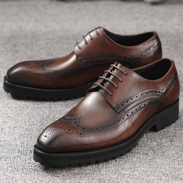 Handcrafted Breathable Men's Premium Brogue Shoes - Thick Sole for Business and Casual Wear, Comfortable