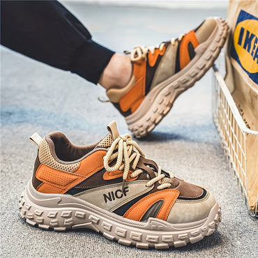 Mens Vintage Color Block Sneakers - Ultra-Comfortable, Anti-Slip & Durable - Pillow-Like Soft Sole, Secure Lace-Up - Perfect for Outdoor Adventures - Chunky Style