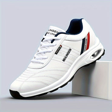 Men'S Air Cushion Skate Shoes - White with Blue Accents, Casual Low-Top Lace-Up Sneakers for Running and Everyday Wear, Comfortable EVA Insole, Rubber Sole, All-Season Wear, Casual Footwear | Stylish Casual Shoes | Comfortable Footwear