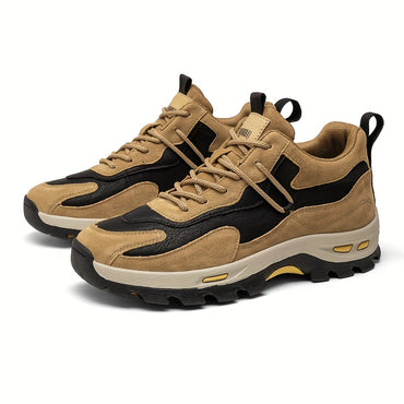 CNA.TROP Men's All-Season Hiking Sneakers - Durable, Non-Slip Traction Shoes with Rotary Buckle Closure, Beige Upper & TPR Sole for Outdoor Adventures, Allseason Footwear|Stylish Pattern Accents|Durable Pu Upper