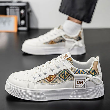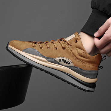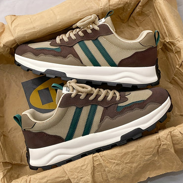 Men's Retro Sneakers - Breathable, Non-Slip, Durable PVC Outsole, Fabric Lining for All-Day Comfort, Low-Top Lace-Up in Brown/Beige/Green