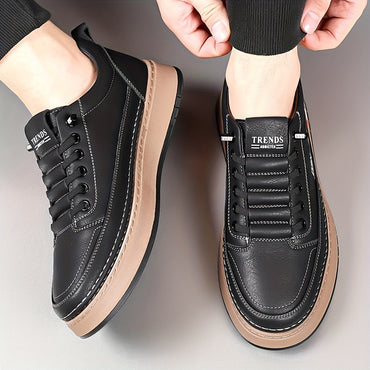 Men's Casual Sneakers - Breathable PU Upper & Non-Slip Rubber Sole, Lace-Up Low-Top Round Toe Design, All-Season Comfort for Outdoor Sports & Casual Attire, Streetwear Shoes, Stylish Street Shoes, Fabric Lined Interior