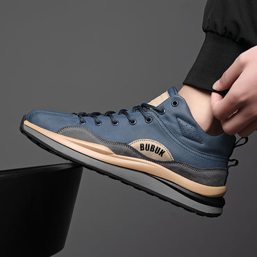 BUBUK Men's Navy Blue Mid-Top Lace-Up Running Shoes - Durable PU Upper & Rubber Sole, Breathable Fabric Lining, Cushioned Comfort for Hiking, Business Casual, Outdoor Walking, Outdoor Walking Footwear | Stylish Laceup Shoes | Breathable Lined Interior, BU