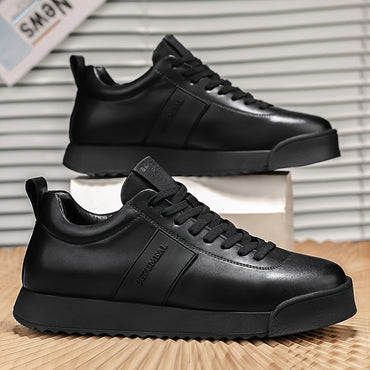 Men's Casual Running Shoes, Solid Color Low Top Sneakers with Lace-Up Closure, Faux Upper & Inner, Fabric Lining, Rubber Sole for Fall/Winter - Round Toe Sports Footwear, Casual Sneakers | Sporty Casual Shoes | Pu Upper Sneakers