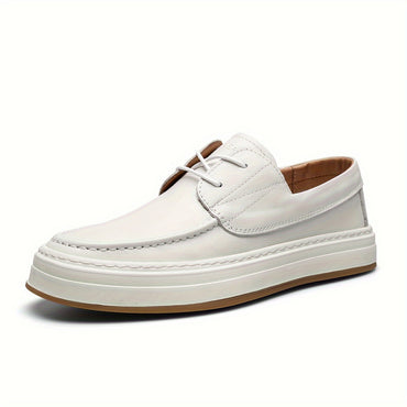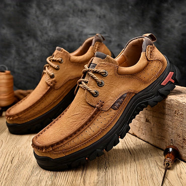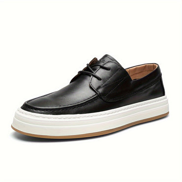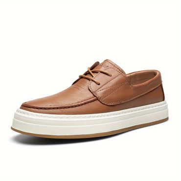 MOSTELO Men's Top Grain Leather Loafer Shoes, Comfy Non Slip Rubber Sole Lace Up Shoes For Men's Outdoor Activities