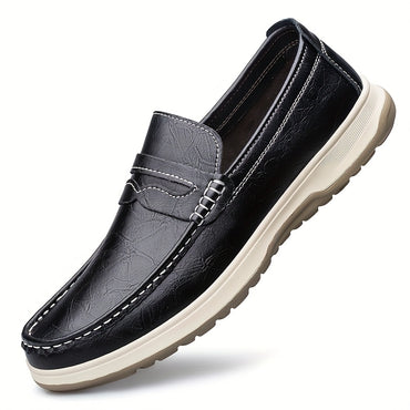 Men's Sleek Slip-On Loafers - Versatile Black Faux Casual Shoes with Non-Slip Rubber Sole, Comfortable PU Lining for Casual Attire