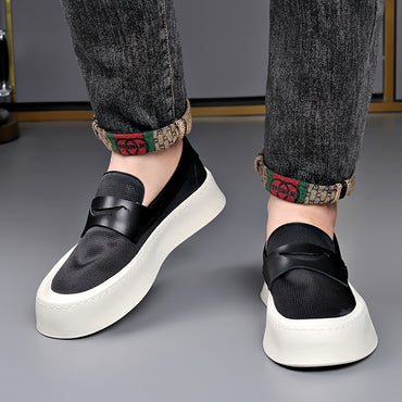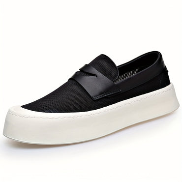 [Stylish Loafers] Stylish Black & White Men's Slip-On Loafers | Comfortable Microfiber Synthetic Upper, Non-Slip Design, Thick Rubber Sole | Casual Attire, Everyday Loafers