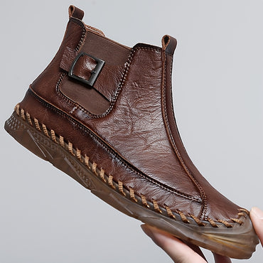 CLOHOO Men's Slip-On Loafers - Second-Layer Genuine Leather Upper, Soft Rubber Sole, Breathable & Comfortable Casual Shoes for Business, Outdoor, Daily Wear - British-Inspired Design, All-Season Versatile Footwear, Stylish Slipons, Durable Construction, C