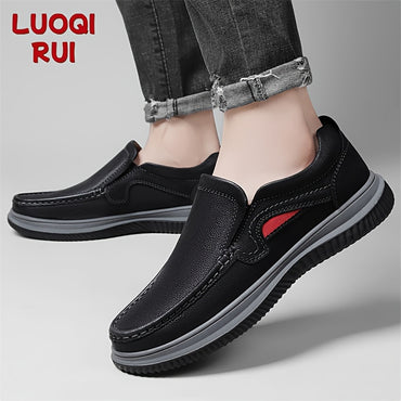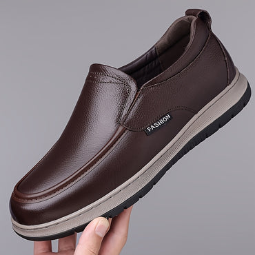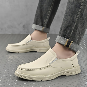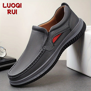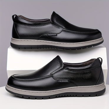 Men's Slip-On Business Casual Shoes - Genuine Leather Upper, Slip-On Closure, Cushioned PU Insole - All-Season Formal & Everyday Shoes for Office, Meetings, Outings - Durable & Easy-Clean - Ideal for Professional & Casual Attire, Rubber Sole Footwear