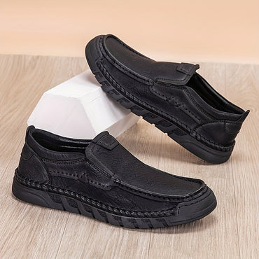 Men's Stylish Slip-On Loafers - Genuine Leather Upper, Rubber Sole, Black, Versatile for Casual & Formal Wear, All-Season Comfort, Easy On/Off Design