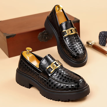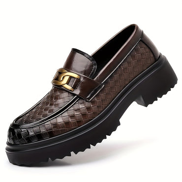Men's Slip-On Loafers with Golden-Tone 'S' Emblem - Thick Cushioned Non-Slip Rubber Sole, Textured Upper, Low-Top Business Casual Shoes for Office & Casual Attire, Elegant Buckle Design, Comfy Shoes