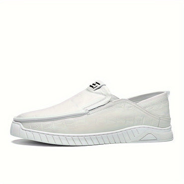 Men's Slip-On Loafers - Slip-On & Lace-like Closure, Non-Slip Rubber Sole, Cushioned PU Insole - All-Season Formal & Casual Shoes for Office, Driving, Everyday - White - Easy-Clean Upper, Non Slip Shoes, Office Footwear, Sleek Minimalist Design, Breathabl