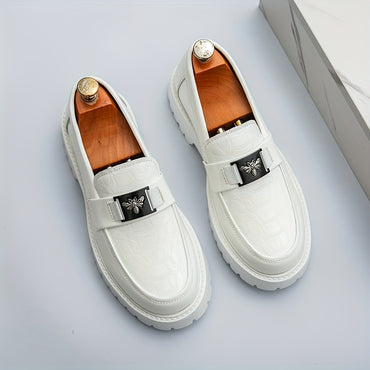 [Comfortable Loafers] Comfortable White Men's Slip-On Loafers | Casual Shoes with Golden-Tone Buckle & Metallic Accents, EVA Sole for Business Casual & Everyday Wear