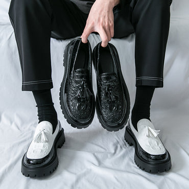 Men's Vintage Wingtip Tassel Brogue Loafers - Slip-On Dress Shoes, Breathable & Comfortable, Non-Slip Rubber Sole, Black & Red Crocodile Pattern, Perfect for Weddings, Business, and Casual Events, Wedding Shoes | Brogue Design | Shoes