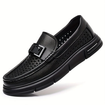1pair Pardasaul Men'S Casual Street Style Slip-On Loafers - Solid Color All-Season Comfortable Breathable Cow Leather Upper with Pig Leather Lining, Rubber Sole, Fabric Insole - Round Toe for Daily Outdoor Use