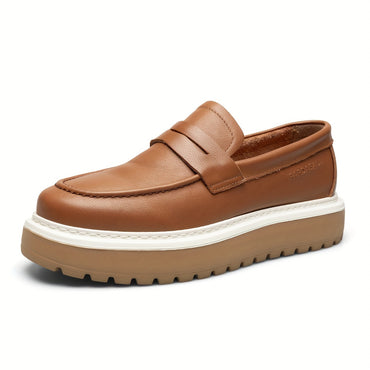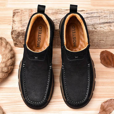 Men's High-Top Leather Loafers - Classic Slip-On Casual Shoes for Outdoor, Hiking & Casual Attire, Comfortable Genuine Leather Upper with Non-Slip Rubber Sole, Casual Footwear | Slipon Loafers | Durable Rubber Sole