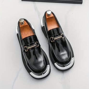 Men's Formal Shoes - Slip-On Wedding & Business Shoes with Thick Platform Sole for Height Increase, Cushioned PU Insole - Glossy Black for Formal Events, Office, and Everyday - Non-Slip Rubber Outsole - Compatible with Formal Attire, Dressy Shoes, Office