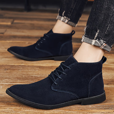 Upper Material: PUInner Material: FabricSole Material: RubberInsole Material: Fabric, EVASeason: All-seasonClosure Type: LaceToe Cap: Pointed ToeStyle: Vintage, CasualScene: Hiking & OutdoorPattern: Solid colorApplicable People: MaleUpper height&cylinder height: Mid topOperation Instruction: Avoid...