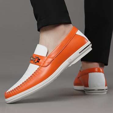 Men'S Modern Slip-On Dress Loafers, Orange & White with Stylish Buckle Accent, Durable Non-Slip Thick Sole, Perfect for Business Casual Wear and All-Day Support, Compatible with 11 Festive Products, Made from High-Quality Synthetic Materials, Everyday Com