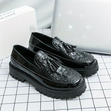 Men's Versatile Slip-On Loafers with Tassels - Sleek Solid Color, Perfect for Weddings & Parties