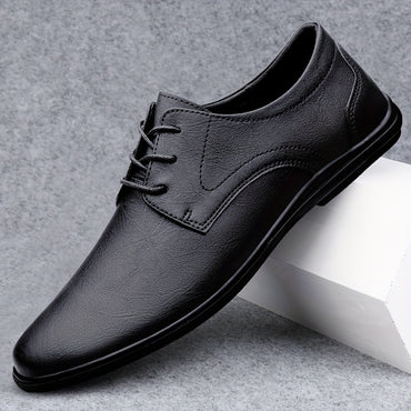 Men's Classic Black Derby Shoes - Lace-Up Business Casual Dress Shoes with Rubber Sole for Office or Formal Occasions