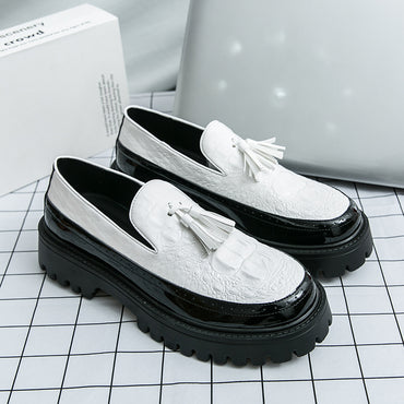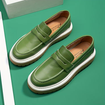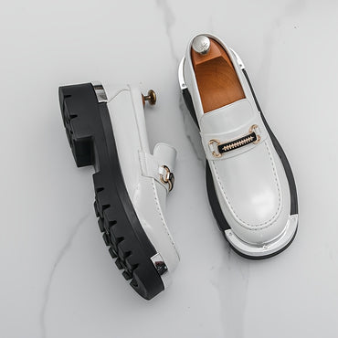 Men'S White Platform Loafers with Golden Buckle - Casual & Business Style, Thick Rubber Sole for Height Increase, Round Toe Design, All-Season Comfort, Stylish Slip-On Shoes, Versatile Footwear, Modern Footwear, Durable Footwear
