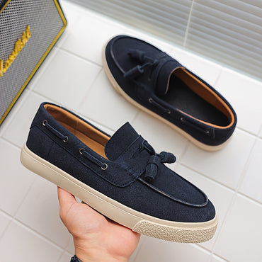 Men'S Slip-On Loafers with Tassel Decoration, Fashionable Comfortable Casual Shoes, High-Quality Rubber Sole, Round Toe Design, Suitable for All Seasons, Ideal for Daily Wear, Indoor/Outdoor/Casual Occasions, Available in Beige, Brown, Blue, College Style