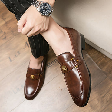[Classic Oxford] Classic Black Oxford Shoes | Men's Comfortable Loafers with Golden-Tone Metal Buckle - Slip-On, Round Toe for Business & Casual Wear