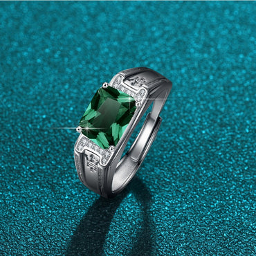 1pc Vintage Men's Wedding Band - Greenish-Blue Synthetic Zirconia Center Stone in Elegant Vintage Setting, Durable Jewelry for Anniversaries, Engagements - Timeless Formal & Everyday Ring with Gift Box (Ideal for Him), Classic Design, Highquality Plating,