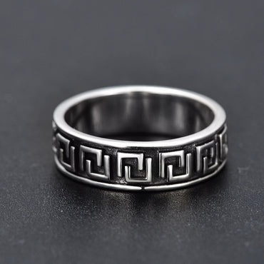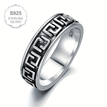 Greek Key Ring for Men S925 Sterling 925 Silver Plated Oxidized Men's Ring Dainty Ring Anniversary Ring Gift Vintage Retro Jewelry