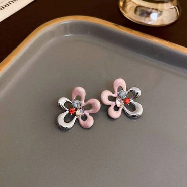 1 pair of fashionable temperament new style Silvery needle inlaid with dripping oil hollow flower earrings niche fashion earrings for women fresh and sweet earrings party banquet festival versatile earrings, Fancy Earrings for Women, Simple Elegant Minima