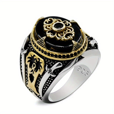 S925 Sterling 925 Silver Plated Round Ring for Men Vintage Retro Jewelry for Men Ring Gift for Men