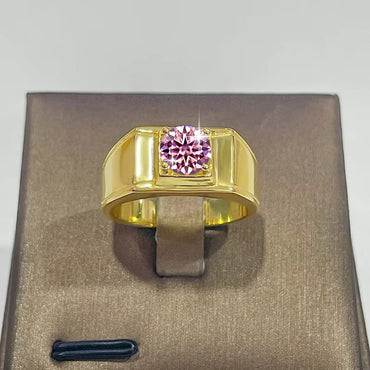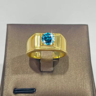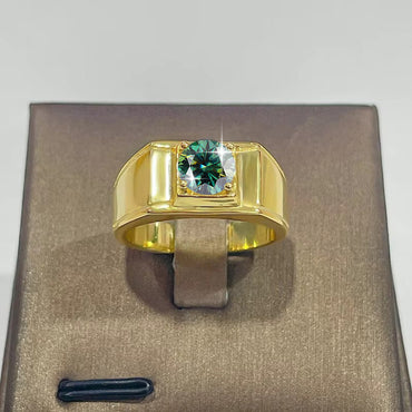 S925 sterling 925 Silver Men's ring plated with 18K Gold Plated Plated simple domineering Moissanite ring 1 carat Moissanite ring for boyfriend and dad holiday gift