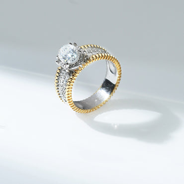 Mosaic Material:moissaniteMain Material:925 SilverPlating: 18K Gold PlatedType: Single RingStyle: Party