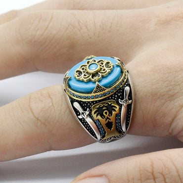 Blue Stone Ring, 925 Sterling 925 Silver Ring, Men's Ring, Handmade Ring with Baroque Carving Art, Ring, Ring, Gift for Him
