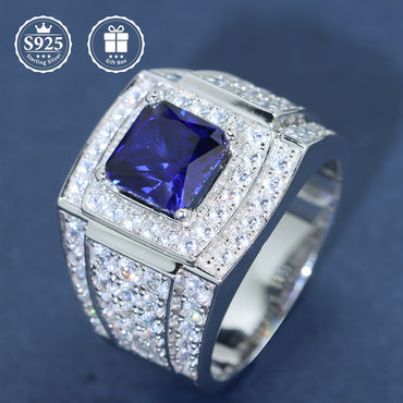1pc S925 Silver Wide Face Shining Luxury Men's Ring, with Laboratory Grown Sapphire, Middle Eastern Style, Very Suitable for Wedding Banquet Music Festival, Valentine's Day Gift, Ramadan Jewelry
