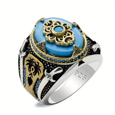 2025 Foreign Trade Turquoise Men's Ring 925 Silver Scimitar Coconut Tree Ring Male ring Valentine's Day, Christmas Gift Father's Day Gift