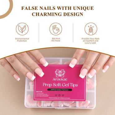 Arousar 240pcs Frence Press On Nails Medium Square/ Almond Glossy/ Matte Fake Nails Stick On Nails Natural Full Cover Acrylic Nails, Christmas Valentine'S Day DIY Salon Gift