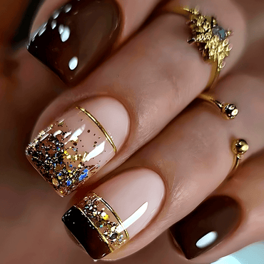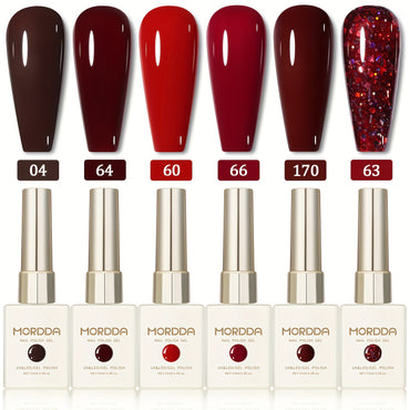 Mordada 6pcs Nail Art Set, 2024 New Trendy Caramel Red with Sparkle, Matte Finish, Round Shape, Fragrance-Free, Nail Tips for Manicure Salon