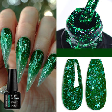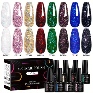 MEET ACROSS 8pcs/Box 0.24oz Christmas Color Nail Gel Polish Red Green Gel Nail Varnish UV LED Soak Off Gel Nail Varnish New Year Nails