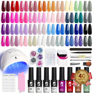 Clara Colors Gel Nail Polish, 40 Colors Purple Green Pink Blue Black UV Gel Nail Polish Set And Base Top Coat With UV Light Set Kit, Soak Off Gel Polish Nail Art For Women