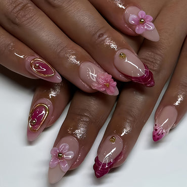 Color Tone: Mixed Color System Nail Shape: almond shaped Nail Length: middle Nail Pattern: flower,Glitter Nail Finishes: Glossy...