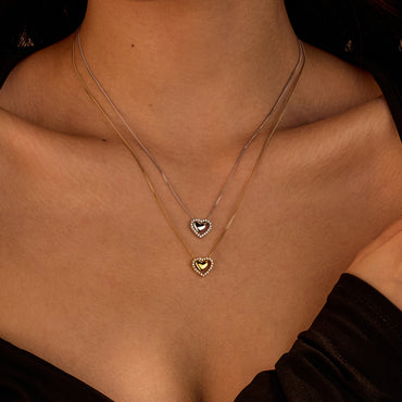 Niche High Grade Love Embellished Zircon Titanium Steel Clavicle Chain Peach Heart Stainless Steel Necklace Women